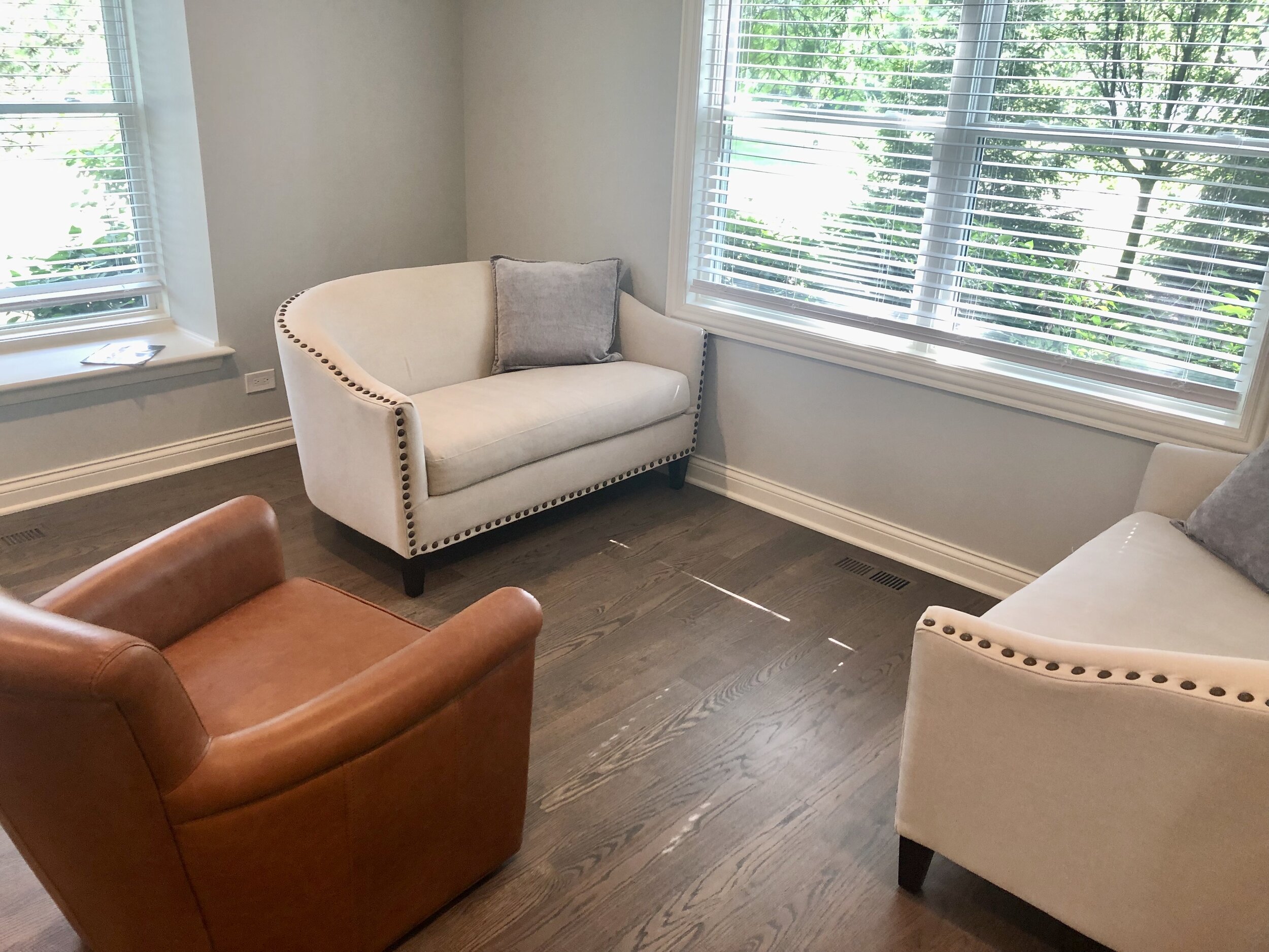 This is the view when you first enter the room from the front door. This kind of shows why I went with the chaise instead of the sectional. I honestly would prefer a sectional, but if the first part of the couch had a high back, I feel like it would have blocked the view to the chair and loveseats, making it look a bit more clustered. I wanted everything to be open and airy, so this helped the room to flow better.
